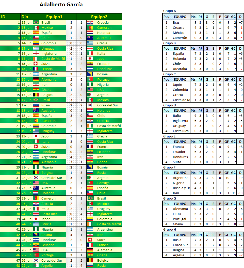 Octavos - Tabla General